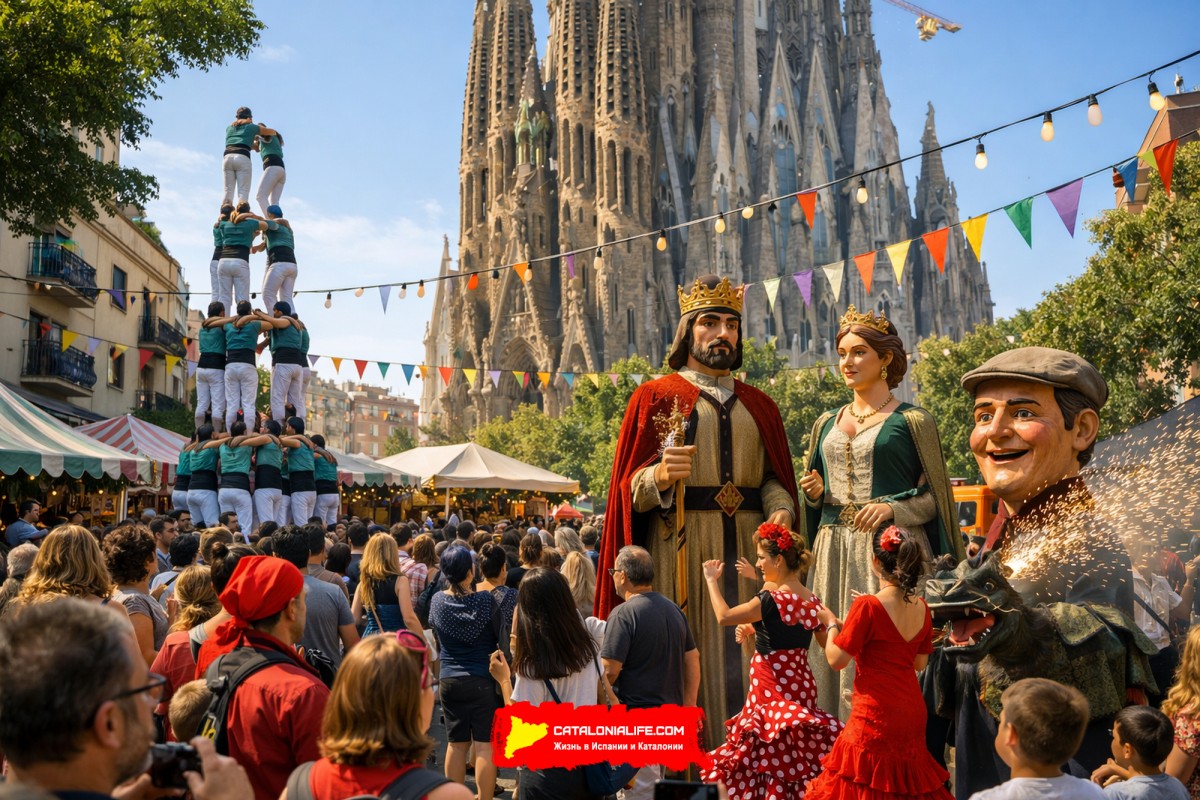 Улицы заполняются процессиями — cercavila, где музыка ведёт людей от одной точки к другой. Появляются гиганты — gegants, знакомые каждому местному жителю с детства. Вечером воздух наполняется искрами correfoc — огненного шествия, которое одновременно пугает и завораживает.