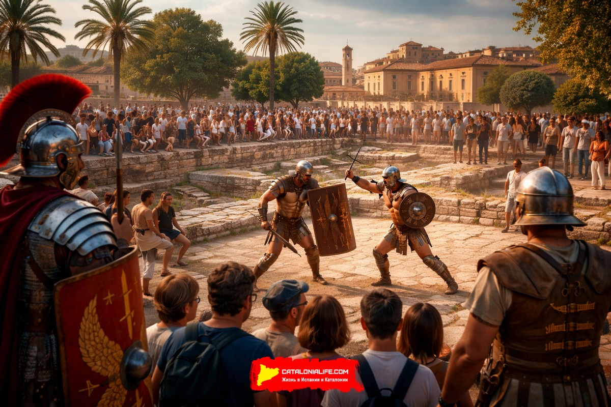По атмосфере Magna Celebratio — это не сухая реконструкция и не обычная семейная ярмарка. Здесь сочетаются научная точность, городской праздник и почти театральное погружение в прошлое. На площадях рядом с музеем появляются легионеры, гладиаторы, персонажи римской повседневности и исторические сцены, а внутри музейных пространств проходят лекции, рассказы о мифах и маршруты по археологическим точкам. Для туристов это редкая возможность увидеть Бадалону не как пригород Барселоны, а как самостоятельный древний город с собственным римским слоем и очень внятной культурной подачей.
