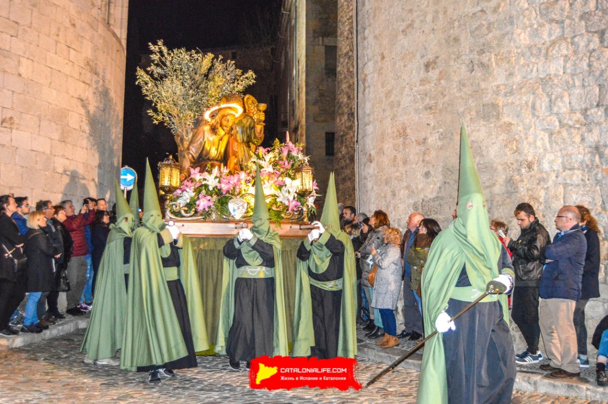 Главный образ процессии — встреча Иисуса с Матерью (trobada de Jesús amb la Mare de Déu). Христос показан уставшим и оставленным, но именно в этой встрече с Марией находит утешение. Это один из самых эмоционально тихих и глубоких моментов всей процессии.