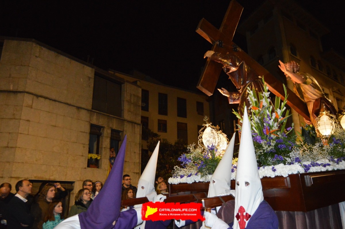 Это братство формально молодое (создано в 1947 году), но с очень «монументальной» эстетикой. В 1946‑м создаётся комиссия по учреждению конфратерии (confraria - религиозное братство), формулируется цель участия в процессии и развития внешнего культа, а уже в 1948‑м появляется главный пас Святого гроба — проект архитектора Хоакима Масрамона де Вентоса (Joaquín Masramon de Ventós), изготовление в барселонских мастерских Клауди Риус (Claudi Rius).