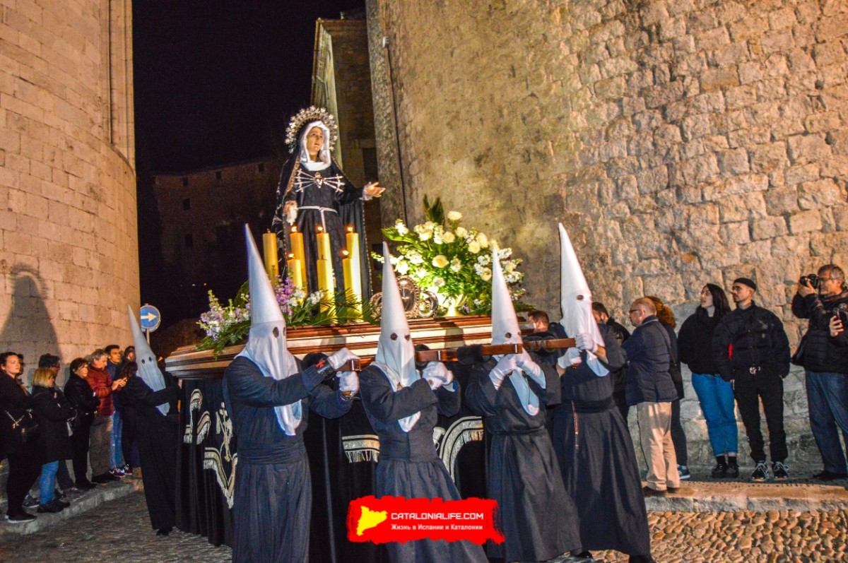 Кульминацией становится ночная процессия Святого погребения (Processó del Sant Enterrament / Procesión del Santo Entierro), проходящая в Страстную пятницу. В 2026 году она начинается в 21:00 у кафедрального собора и завершается там же спустя примерно два часа. Однако сама процессия — лишь финальная часть более широкой традиции, которая разворачивается на протяжении всего дня.