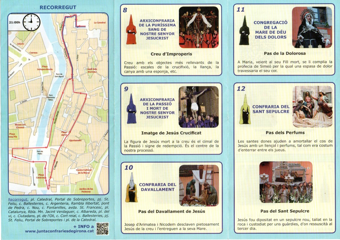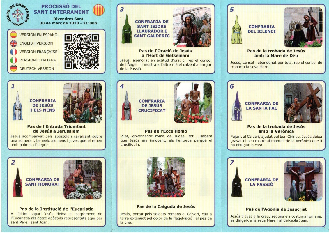 В 1950 году епископ создал комиссию для организации братства и подготовки процессии, а уже в 1951 году впервые был представлен основной образ — встреча Иисуса с Вероникой. Позже композицию дополнили фонарями и фигурой Киринеянина (Cirineu — Симон Киринейский) в 1961 году. Автор процессии (паса) — Жузеп Мария Кампс-и-Арнау (Josep Maria Camps i Arnau).